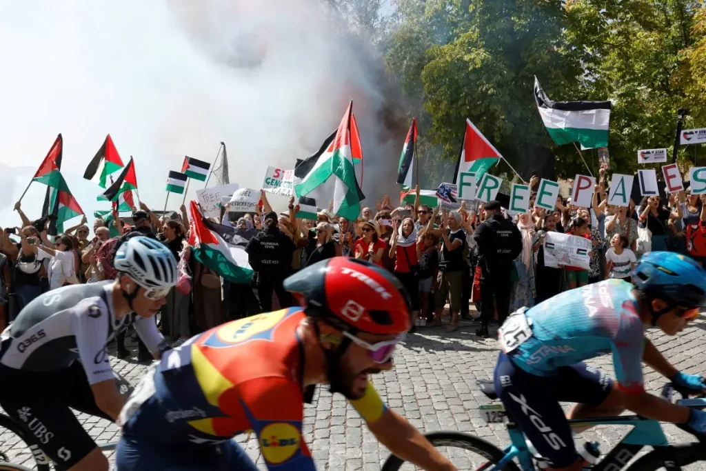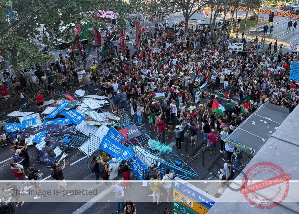 قام ما يقرب من 100 ألف متظاهر – وفقا للتقديرات الرسمية لمفوضية الحكومة المركزية في (مدريد)- بقطع الشارع الرئيسي الذي كان من المُنتظر أن ينتهي عنده سباق الدراجات La Vuelta، ومنع إقامة هذه المرحلة النهائية أو عقد مراسم تسليم الجوائز للفائزين وذلك للتعبير عن احتجاجهم على مشاركة أعضاء فريق Israel Premier Tech في هذا السباق، والتعبير كذلك عن تضامنهم مع الشعب الفلسطيني والتنديد بالمجازر والإبادة الجماعية التي ترتكبها إسرائيل ضد المدنيين في قطاع غزة.